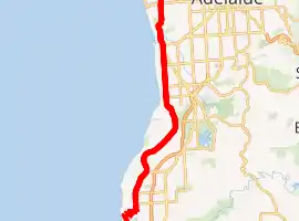 Tapleys Hill Road is the northern part of Route A15 which continues past the southern end of Tapleys Hill Road onto Brighton Road, then Ocean Boulevard, Lonsdale Road and Dyson Road. Route A15 continues through Port Noarlunga on parts of Murray Road, Gawler Street, Gray Street, Saltfleet Street, Commercial Road and by Maslin Beach, Old Coach Road.