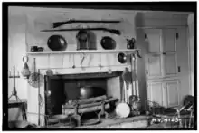 - 1700 DeClark-DeWint House – 20 Livingston Street – Built in 1700, oldest house in Rockland County. To the northwest and northeast of the front entrance of the 1700 DeWint house are the carriage house and a stone mill. At the rear of house stand seven initialed headstones which came from a nearby property. It is believed these headstones marked where the slaves of that home were buried.(NRHP) Threatened with demolition in 1932, the house and grounds were purchased and preserved by the Grand Lodge of Free and Accepted Masons of the State of New York, as a National Historic Site and a memorial to George Washington (who was himself a lifelong Mason).[6] Since 1984, in the month of September The Tappantown Historical Society has held Colonial Day featuring Colonial Army re-enactors and Encampment Soldiers. Tour of the DeWint house include ladies and gentlemen in colonial attire preparing for winter. The Carriage House Museum houses local artifacts. On the Dewint House Grounds people in colonial attire demonstrate apple pressing, buttermaking, Sheep shearing, blacksmith and cooper, spinning and other events showing how colonial ancestors lived.