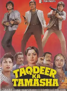 Taqdeer Ka Tamasha (transl. Farce of Fate) is a 1988 Hindi-language action film, produced and directed by Anand Gaekwad under the Film Group banner. It stars Jeetendra, Govinda, Aditya Pancholi, Moushumi Chatterjee, Kimi Katkar, Mandakini in the pivotal roles and music composed by Anand–Milind.[1] Film was flop at the box office