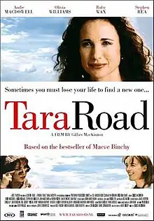 Tara Road is a 2005 film directed by Gillies MacKinnon. It is based on the 1998 novel of the same name by Maeve Binchy.[3]