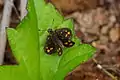 Male. Upperside rufous-brown, with small orange spots. Forewing with eight spots, one in the cell, three conjoined from near the costa before the apex, two in the middle of the disc, and two close to the outer margin below the apex. Hindwing with two pairs of spots in the disc, one pair in the middle and the other near the apex. Cilia of both wings pale brown. Underside. Forewing blackish-brown, the spots as above, but paler and duller in colour, and there is a dull orange streak between the costa and sub costal vein. Hindwing paler, markings as above, but with an additional spot at the end of the cell, and the entire wing more or less covered with minute orange scales. Antennae black, the lower half of the club white at the sides, the shaft with white dots; palpi, head and body coucolorous with the wings; palpi grey beneath, the abdomen with obscure grey bands on the underside. Female like the male.