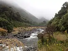 Several small rivers are tributaries of the Taramakau. The largest of these are the Otehake River and the Ōtira River. The valley of the Ōtira forms the western approach to Arthur's Pass.[3]