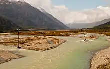 The Taramakau River is in the northwest of the South Island of New Zealand.[1] It rises in the Southern Alps / Kā Tiritiri o te Moana near Harper Pass, 80 kilometres (50 mi) due east of Hokitika, and runs westward for 75 kilometres (47 mi) into the Tasman Sea 15 kilometres (9.3 mi) south of Greymouth.[1][2]