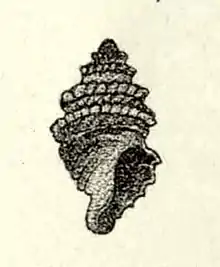 (Original description) The minute, fusiform shell is cancellated. It contains six whorls with two polished whorls in the protoconch. The spire-whorls show a prominent spiral keel, crossed by rather oblique and rather distant spiral threads, forming an obtuse angle on the keel. The suture is margined. The body whorl contains 8 or 9 spiral ribs, the first and third larger than the others. The others after the sixth come very close together on the siphonal canal. These are crossed by rather distant longitudinal lines which form a very obtuse angle on the first spiral rib or keel. The aperture is less than half the length of the shell, rather constricted and angled behind. The columella is straight, produced into a short canal. [2]