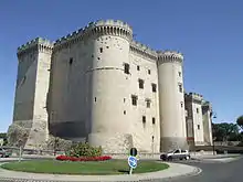 The castle of King René (fr). The present castle replaced a fortress, built on the site of the Roman town to monitor the border of Provence. After the destruction perpetrated in 1399 by the bands of Raymond de Turenne, the Anjou family decided to rebuild it entirely. The construction of the current castle of Tarascon was started in 1401 by Louis II of Anjou. The construction was continued by his first son, Louis III of Anjou, and was completed in 1449 by his second son, René I of Naples (René d'Anjou). Thus, the castle is often referred to as le château du roi René (King René's castle). It was turned into a military prison in the 17th century, until its acquisition by the state in 1932.
