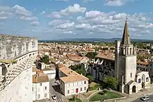The town was damaged by Allied bombings from June to August 1944, during World War II. The bombings, targeting the bridges across the Rhone in an attempt to hamper the German retreat, destroyed parts of the old town. The first bombing took place on June 25, 1944. On August 16, 1944, the tip of the church tower of Église Sainte-Marthe was destroyed.