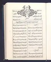 The Persian Tarbiyat (Persian: تربيت; DMG: Tarbīyat; English: "Education") was the first non-governmental newspaper in Iran.[1] It was founded in Teheran by Mirza Mohammad Hosseyn Foroughi, also known as Zaka-al Molk, in 1896 and was published until 1907. For Foroughi, who was a poet and also worked as a translator for Naser al-Din Shah, the acquisition of modern sciences was of decisive importance for the development of the country and its society.[2] Contrary to the common perception of traditional education and science, he wanted to contribute to the modernisation of the Iranian society by publishing this journal.[3] The publication history of the nine years with a total of 434 issues varied between daily, weekly and monthly publications.[4] The articles deal with topics such as history and geography but also with medical and other scientific subjects. Particularly due to its literary focus and the publication of numerous translations the journal was a literary pioneer of that time.[5]