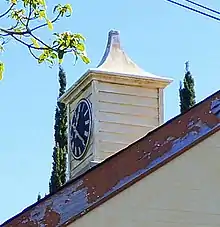 Residence of an important public figure of the nineteenth century. One of the earliest buildings established in the vicinity and one of the earliest still in existence.[1][3] A two-storey Victorian Italianate style residence of brick construction (tuck-pointed, now painted) with corbelled brick eaves and hipped slate roof. The house has a two-storey verandah on the main (north) elevation; the lower level verandah is paved with tesselated tiles in a mosaic pattern with a slate border; slender cast-iron columns support the timber structures of the upper level. Panelled front door has sidelights, a leadlight panel over and brass door knob, knocker and bell pull.[1][3]