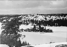 When relations with the Soviet Union deteriorated in late 1939, the Finnish state-owned icebreakers were again armed and assigned to a wartime icebreaker flotilla.[15] Tarmo had been fitted with gun mounts already in 1931, and shortly before the Winter War began she was armed with four 120 mm (4.7 in) 50-caliber Vickers naval guns of Russian origin on two twin mounts. It was soon apparent that the guns, which were used on all large Finnish icebreakers, were not very suitable for naval use due to their relatively short range and slow rate of fire. On 11 January 1940, after spending the early days of the war near Turku, Tarmo was ordered to the Gulf of Finland because the ice conditions had become too severe for the smaller Murtaja. When the two icebreakers met in Helsinki on 13 January, a Madsen 20 mm anti-aircraft cannon was moved from Murtaja to Tarmo.[8]