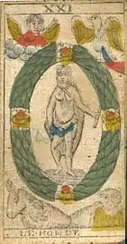 The Tarot de Besançon,[1] also called the Besançon Tarot or Swiss Tarot, describes a type of Tarot pack that was derived from the older forms of the Marseille type, but which portrays characteristic differences.
