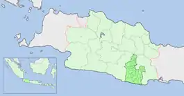 Tasikmalaya Regency (pronounced [ˈtasɪʔməˈlaja]) (Indonesian: Kabupaten Tasikmalaya, Sundanese: ᮊᮘᮥᮕᮒᮦᮔ᮪ ᮒᮞᮤᮊ᮪ᮙᮜᮚ) is a regency (Indonesian: kabupaten) in the province of West Java, Indonesia. It covers an area of 2,708.82 km2, and had a population of 1,687,776 at the 2010 Census, which rose to 1,865,203 at the 2020 Census.[2] Located in the southeastern region of Priangan (Preanger), the Regency is by far the biggest and the most important regency in East Preanger (Indonesian: Priangan Timur). The Regency was previously administered from Tasikmalaya City, which however is now administratively independent of the Regency (the area and population of the Regency exclude the City), and the administrative centre of the Regency is now at Singaparna to the west of the city.