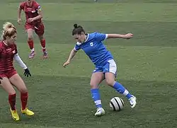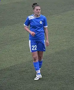 Tatiana Matveeva is a member of the Georgian national team.[4] She played at the UEFA Women's Euro 2013 qualifying round's three matches as the captain of the national team.[7] At the 2015 FIFA Women's World Cup qualification (UEFA) - Group 2 matches, she captained again, capping three times and scoring one goal.[8][9][10]