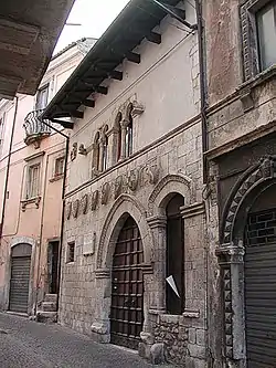 The building is characterized by a pointed Gothic portal, and a façade embellished with coats of arms of the noble families that have lived to Cantelmos.