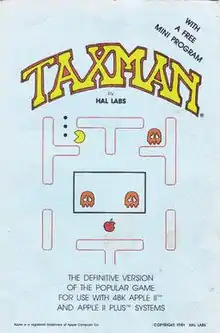 Taxman is a clone of Namco's Pac-Man written by Brian Fitzgerald for the Apple II and published by H.A.L. Labs, a firm he cofounded with Greg Autry, in 1981.[1]