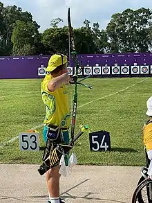 He took up archery in 2001 when he was only 6 years of age. At 14 he made a promise to his grandmother to make it to the Paralympic Games.[5] She wrote to Take 5 Magazine and with the money won in their "Wishing Well" competition he purchased a Recurve Bow.[6] At Archery Australia’s 2021 Para & VI National Championships, he was third in the Para Open Male Recurve.[7] He is a member of the Samford Valley Target Archers in Brisbane.