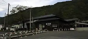 Tazawa Station is served by the Shinonoi Line and is 21.6 kilometers from the terminus of the line at Shiojiri Station.[1]