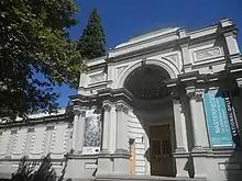 The Tbilisi Art Gallery (Georgian: თბილისის სამხატვრო გალერეა), or the National Gallery[1] is an art gallery located on Rustaveli Avenue in Tbilisi. Historically, it is known to Tbilisians as the Blue Gallery, taking its name from the various shades of the blue-green paint previously adorning the facade, although the building is now painted grey.