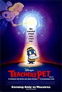 Teacher's Pet is a 2004 American animated musical comedy film, based on the 2000 television series of the same name created by artist Gary Baseman. Produced by Walt Disney Television Animation and distributed by Buena Vista Pictures, the film was directed by series director Timothy Björklund and written by series creators Bill and Cheri Steinkellner. The film serves as the series finale of the television series, as it ends the central storyline. The film was released theatrically on January 16, 2004, to mostly positive reviews, but flopped at the box office, making only $6.5 million on a $10 million budget.[2]