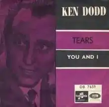 "Tears" ("Tears for Souvenirs") is a song written by lyricist Frank Capano and composer Billy Uhr,[2] and was first recorded by Rudy Vallee in 1929.[3] It was made famous in a version recorded by Ken Dodd, released as a 45 rpm single in 1965. It became a No. 1 hit in the UK Singles Chart.[1] The song also reached number one on the Irish Singles Chart.