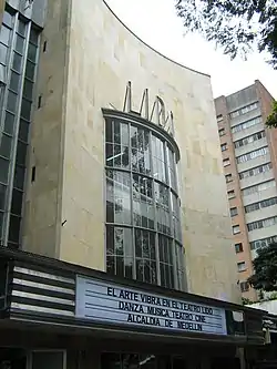 The Teatro Lido is a Colombian theater placed at the southeastern coast of Park of Bolívar, in Medellín. The theater began operating in 1945 and in 2007, after a methodical restoration was reopened, and is administered by the Mayor of Medellin. It has capacity for 1,100 spectators and offers a variety of programming throughout the year.[1][2][3][4]