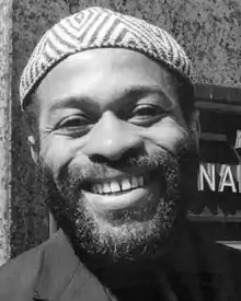 Joans was born in Cairo, Illinois, as Theodore Jones. His parents worked on the riverboats that plied the Ohio and Mississippi rivers.[1] He played the trumpet and was an avid jazz aficionado, following Bop as it developed, and continued to espouse jazz of all styles and eras throughout his life. Growing up in Fort Wayne, Indiana, and Louisville, Kentucky, he earned a degree in fine arts from Indiana University,[2] before moving in 1951 to New York City.[3] In New York he painted in a style he dubbed Jazz Action and read his poetry, developing a personal style of oral delivery called Jazz Poetry. He was a participant in the Beat Generation in Greenwich Village. He was a contemporary and friend of Jack Kerouac and Allen Ginsberg, Leroi Jones (later known as Amiri Baraka), Gregory Corso, Diane Di Prima, Bob Kaufman, Lawrence Ferlinghetti and others. Joans shared a room for a time with the great jazz musician Charlie Parker.[1] Joans' bohemian costume balls and rent parties were photographed by Fred McDarrah and Weegee. Joans was also deeply involved in Surrealism, meeting Joseph Cornell; and at first becoming close to his childhood hero Salvador Dalí, then soon breaking with him. In Paris, he was welcomed into the circle of André Breton. Joans was an erudite africanist and traveled extensively throughout the continent, frequently on foot, over many decades between periods in Europe and North America. From the 1960s onward, Joans had a house in Tangier, Morocco, and then in Timbuktu, Mali.[3] While he ceased playing the trumpet he maintained a jazz sensibility in the reading of his poems and frequently collaborated with musicians. He continued to travel and maintained an active correspondence with a host of creative individuals, among them Langston Hughes, Michel Leiris, Aimé Césaire, Robert Creeley, Jayne Cortez, Stokely Carmichael, Ishmael Reed and Paul Bowles, Franklin and Penelope Rosemont; many of these letters are collected at the Bancroft Library of the University of California Berkeley. The University of Delaware houses his correspondence with Charles Henri Ford. Joans was also a close correspondent/participant of the Chicago Surrealist Group.
