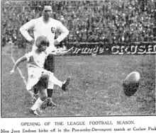 In 1939 he continued to officiate matches though he spent most of the first half of the season as a linesman to games at Carlaw Park.[113] At the start of the season his father Bill (William) was made a life member of the Auckland Rugby League Referee's Association after 25 years of service to the game.[114] On the weekend of 29–30 July Ted played in a ‘House’ match between Railways, where he worked, and Smith and Brown at the Ellerslie Domain. He scored 2 tries and 2 conversions in a 19–5 win.[115]