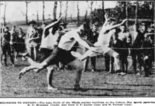 In 1928 he had progressed to their 3rd grade intermediate team to start the season.[6] Then at the end of the season he debuted for the senior side in a Labour Day tournament held over two weekends at Carlaw Park where he made 3 appearances. Richmond had taken the opportunity to try some younger players for the matches. His first was against Newton Rangers on 20 October and he scored 1 try.[7] The New Zealand Herald reported that "Mincham played a particularly good game, being very elusive on attack".[8] As part of the weekend celebrations many other sporting events were also held including running races at the Auckland Domain. Mincham won the 100 yard race in a time of 11.15 seconds.[9] The Sun newspaper at the time published a photograph of Mincham winning the race narrowly.[10] He played in their semi final win over Ponsonby United the following weekend and the final which was played the same afternoon against Marist Old Boys. Mincham scored a try in a 12–5 loss.[11]