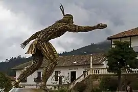 Another theory presented by the Colombian government on its website describes the game as having originated more than 500 years ago. In this theory, presented by one of the most important authorities in the country, the sport was played by native people that would use a golden disc called zepguagoscua. This, however, is refuted in other sources as a word with sounds not existent in dictionaries of the Chibcha language.[2]