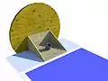 The pitch or post is usually a wooden box of approximately 90 cm (35 inch) wide and 1 meter (40 inch) long, filled with clay, and either tilted or cut at a 35 to 45 degree angle. The clay used is anything from average mud to modeling clay, depending on the setting of the sport. The tejo gets embedded in the clay upon landing, and depending on the consistency of the clay, the tejo can be easily reached or sometimes it becomes necessary to dig a little bit to find it. This makes the consistency of the clay very important.