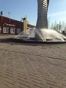 Water fountain outside the entrance to Teknikens Hus, Luleå