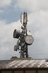 Telecom and radio infrastructure on a rooftop in the city of Pale, Republika Srpska, Bosnia-Hercegovina (c. 2012)