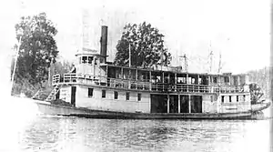 On January 22, 1917, at 3:40 pm, near Prosper, Telegraph, under the command of Capt. Allan R. Panter collided with the rival sternwheeler Dispatch.[14][15] Capt. Thomas O. White,[16] of Dispatch, attributed the collision to "pure cussedness" on the part of Captain Panter.[15] Both captains filed reports with the steamboat inspection service.[14] The points on which they agreed were that the steamers had been at Prosper, when Telegraph was backing away from the wharf, and then struck Dispatch on the left side near the rear of the vessel, where the engines were located.[14] Dispatch was leaving the dock at the time.[14] The collision caused the loss of about 20 feet of the rear portion of the cabin structure on Dispatch.[14]