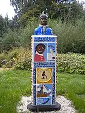 Telegraph Hill Park is in two halves on either side of Kitto Road; the upper park contains tennis courts which apparently occupy the site of the telegraph station which gave the hill its name.[18] This upper part is the only part of the park to allow dogs, and is a popular spot amongst the local community for watching the New Years fireworks across London due to its excellent vantage point and view across the London skyline. The lower park contains ponds, children's playgrounds and a concrete space for ball games as well as a statue of Olaudah Equiano.[18] A farmers' market is held in the lower park on every Saturday 10am-3pm.