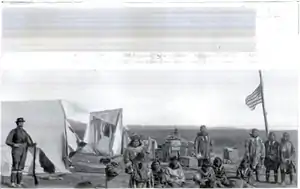On June 29, 1892, Sheldon Jackson visited the head of Port Clarence, Alaska, in search of a suitable location for the establishment of a reindeer station. In making a location it was important to take into consideration nearness to the coast of Asia, character of harbor, position with reference to future distribution of reindeer, supply of good pasturage and water. Finding that all these conditions were best met at the watering station of the whaling fleet, on the extreme northeast corner of the bay, near Grantley Harbor, Jackson selected that point for the reindeer station, and on the same day put up two tents and landed from the steamer Newport the provisions and supplies for the station.[3]