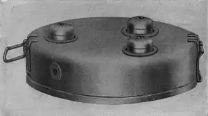 The Tellermine 29 is a round, metal-cased German anti-tank blast landmine. It first entered service in 1929, and the initial German defence plan was to purchase 6,000 a year, but in January 1931 it was decided to speed up the purchase process, and 61,418 were ordered.[2] By 1937, with the introduction of the Tellermine 35, it was being used for training, and the majority were sent to warehouses.[3]