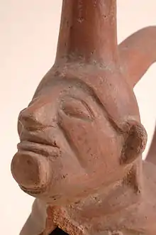 Molle culture used the adornment, made of rock, preferably of beautiful colors. It consists of a thin curved plate molded to the gums. In the centre was a button, either cylindrical or sharply-pointed, that penetrated the lip 5 to 7 cm.