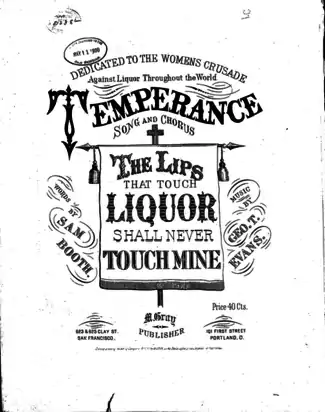 - Gray, M.; Evans, M. (1874). "The Lips that touch liquor, shall never touch mine". San Francisco, California: M. Gray. Retrieved 2015-10-30.