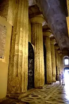 The Temple of Athena is a hexastyle peripteral Doric temple built in Syracuse in the 5th century BC by the tyrant Gelo after his victory over the Carthaginians at the Battle of Himera.[1] The temple was preceded by a cult site which dated back to the 8th century BC, with an altar discovered in excavation at the beginning of the twentieth century, and by an earlier temple from the middle of the sixth century BC.