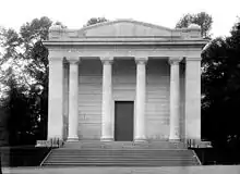 The Temple of Human Passions (French: Pavillon des passions humaines, Dutch: Tempel van de menselijke driften), also known as Pavillon Horta-Lambeaux, is a neoclassical pavilion in the form of a Greek temple that was built by Victor Horta in 1896 in the Cinquantenaire Park of Brussels (Belgium). Although classical in appearance, the building shows the first steps of the young Victor Horta towards Art Nouveau. It was designed to serve as a permanent showcase for a large marble relief The Human Passions by Jef Lambeaux. Since its completion the building has remained almost permanently closed. Since 2014, the building is accessible during the summer time.[2]