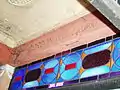 Each side of the memorial has a pillared marble balustrade. Above this is a row of three leadlight gothic style windows. A rectangular leadlight runs along the top of all the walls. The rear wall is mostly covered with inscribed marble tablets while the front of the memorial is open with metal gates. A black metal dove with olive leaves in its mouth, a symbol of peace, sits over the entrance.[2]