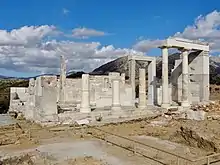 The Temple of Sangri is a Late Archaic Greek temple on the Cycladic island of Naxos in the area of Gyroulas, about 1.5 km south of Ano Sangri. The temple was built around 530 BC and is one of the earliest Ionic temples. It was built completely from Naxian marble.