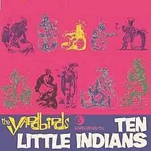 The Yardbirds recorded "Ten Little Indians" for their second-to-last single on September 25, 1967. The song was a further departure from their earlier recorded material, which had begun when Mickie Most became the group's producer.[2] They follow Nilsson's arrangement, but with Jimmy Page's guitar work, the tune has a more psychedelic- or experimental- rock sound.[2] Only singer Keith Relf and Page perform, with studio musicians John Paul Jones on bass and Clem Cattini on drums (Yardbirds' Chris Dreja and Jim McCarty were left out). Jones also provided the orchestral arrangement and Page employs an audio effect known as reverse echo.[2]