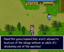Tengai Makyō Zero was one of the few Super Famicom games to make use of the SPC7110, a data decompression chip that allows for more data to be stored on a cartridge than a typical Super Famicom game.[3] As a result, the game includes a large variety of music, a large amount of text dialogue, and no repetition of enemy sprites whatsoever.[4] The game also makes use of a real-time clock accessed via the SPC7110, which, much like recent games in the Animal Crossing and Pokémon series, results in different special events in the game taking place depending on the time of day, and even the time of year.[3]