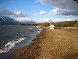 Tenjin Beach (天神浜, Tenjinhama) is a recreational beach on Lake Inawashiro in Fukushima Prefecture, Japan. On August 18, 1925, Tenjin Beach was the site of the first Boy Scouts of Japan camping trip.[1] Members of the Imperial Family, including Crown Prince Hirohito and Prince Chichibu, attended the event. In winter, strong winds and waves form natural ice sculptures on shoreline vegetation, attracting many amateur photographers to a 1 kilometer stretch of Tenjin Beach.