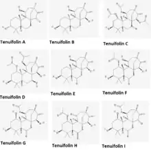 Tenuifolins are bio-active terpenoids. Tenuifolins inhibit beta-amyloid synthesis in vitro. Tenuifolins have nootropic activity in vivo via acetylcholine esterase inhibition and increased norepinephrine and dopamine production.