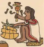 Motolinia, a Franciscan friar and chronicler of post-conquest Aztec life, stated that the teponaztli, or as he called it the contrabajos (counterbass), was often played with the huehuetl skin drum to accompany various dances.[4] In addition to dances, teponaztlis were used to accompanied poetry readings: the notations for the sounds of the drum beats (cuīcatlahtōl [kʷiːkaˈt͡ɬaʔtoːl]) even at times appear within the poetry itself ("totocoto tototo cototo tiquititi titiqui tiquito").[5] The word cuīcatlahtōl, meaning "musical note", is formed from the two words cuīcatl [ˈkʷiːkat͡ɬ] (song) and tlahtōlli [t͡ɬaʔˈtoːlːi] (word). This solfege-style notation allows reconstruction the rhythms and sounds of the Aztecs.