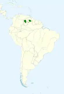 It is found in Brazil, Guyana, and Venezuela. Its natural habitat is subtropical or tropical moist montane forest.