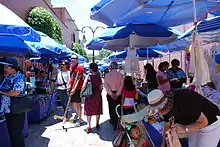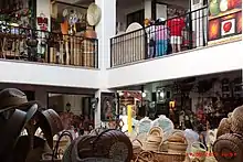 Another attraction of the town is shopping, especially for handcrafts and folk art. The two most traditional crafts of the area are baskets and furniture made from wood, wicker, rattan and other materials. However, crafts from many parts of Mexico are available for sale as well. The main markets, which are the municipal market and the handcrafts markets are located on Ezequiel Montes Street near Salvador Carrizal.[5][7] In addition to these markets there are a number of street vendors who sell from stalls or by walking around the streets. One common type of merchandise, especially in the main square are sweet breads, dried fruit, fruits in syrup and other sweets.[3] One unique sweet of the town is crystallized nopal cactus.[4] Otomi women can be seen in the main plaza and other locations selling their crafts. Most of these vendors are from the neighboring municipality of Amealco. These crafts generally consist of embroidered napkins and other textiles, rag dolls, ceramics and baskets.[8]