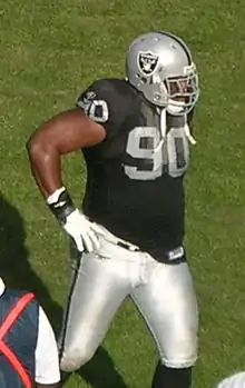 For the Raiders in 2006, Sands played in 16 games, starting two, while recording a career-high 41 tackles, a sack, and his first career interception. Following the season, he was re-signed to a four-year, $17 million contract. He started 11 of 16 games played for the Raiders in 2007, picking up 23 tackles and no sacks. In 2008, he played in 16 games with no starts, recording 29 tackles and two sacks. Following a road win over the Denver Broncos on November 23, 2008, Sands punched Raiders punter Shane Lechler in the face on the team flight, but was neither fined nor suspended for the incident.[1] In six years with the Raiders he started 14 of 75 games, recording 128 tackles, four sacks and an interception.