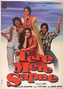 Tere Mere Sapne (transl. Dreams of Yours and Mine) is a 1996 Indian Hindi-language romantic drama film produced by superstar Amitabh Bachchan's production company A. B. C. L. and directed by Joy Augustine. The film had a cast of newcomer actors consisting of Arshad Warsi, Chandrachur Singh, Priya Gill and Simran.[3]